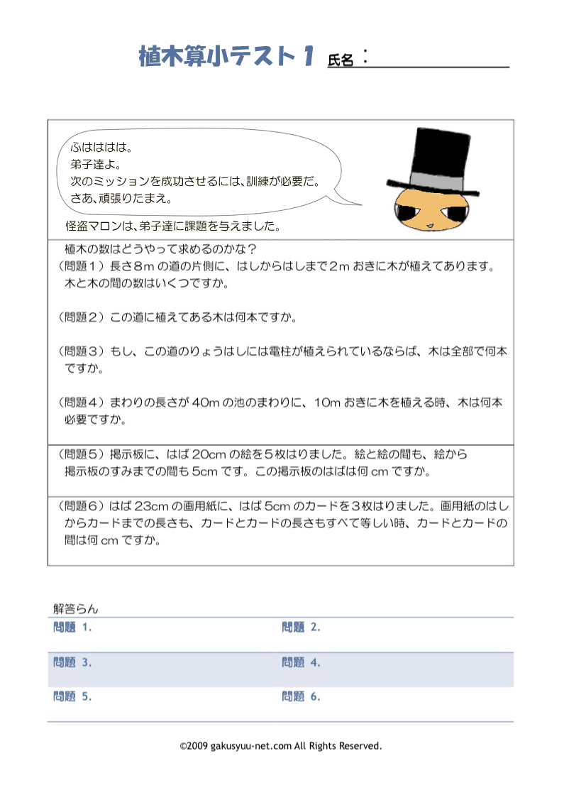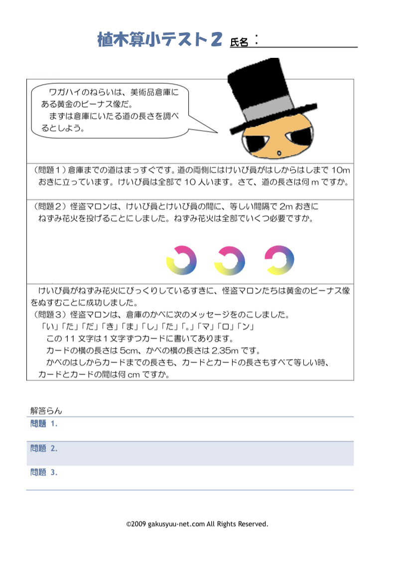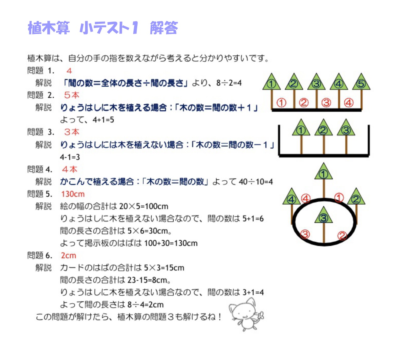 植木算の小テストの解答